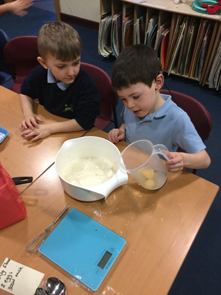 Posted on 28th Feb 2020 by Year One We practised flipping!We practised flipping!We practised flipping!cracking eggs.Mix it up.Weighing the flour.Mixing up.Excited to make pancakes.Adding the eggs.Finally the cooking. Share this: Share on X (Opens in new window) X Share on Facebook (Opens in new window) Facebook Like Loading... Related