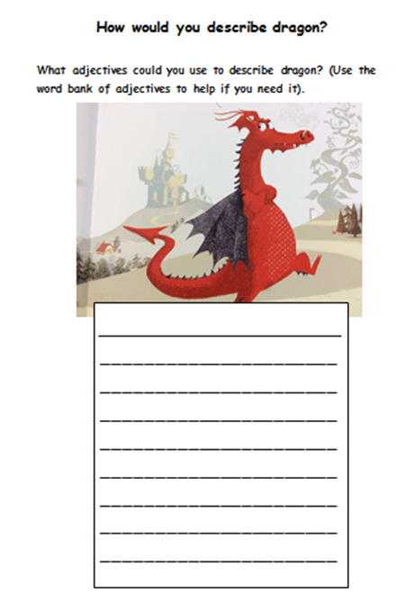 In literacy I would like you to use all of your fantastic knowledge of adjectives from Friday to create sentences describing the dragon.