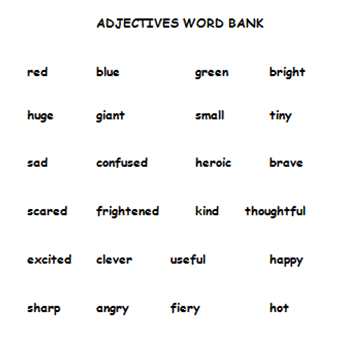 Just in case you would like some adjectives to help you there is an adjective word bank below. I can’t wait to read some of your sentences.