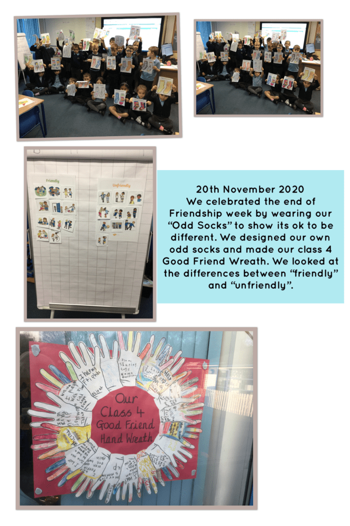 Posted on 25th Nov 202025th Nov 2020 by Year One Thank you to all our parents in class 4 for looking at our Friendship Wreath on the classroom window. Share this: Share on X (Opens in new window) X Share on Facebook (Opens in new window) Facebook Like Loading... Related