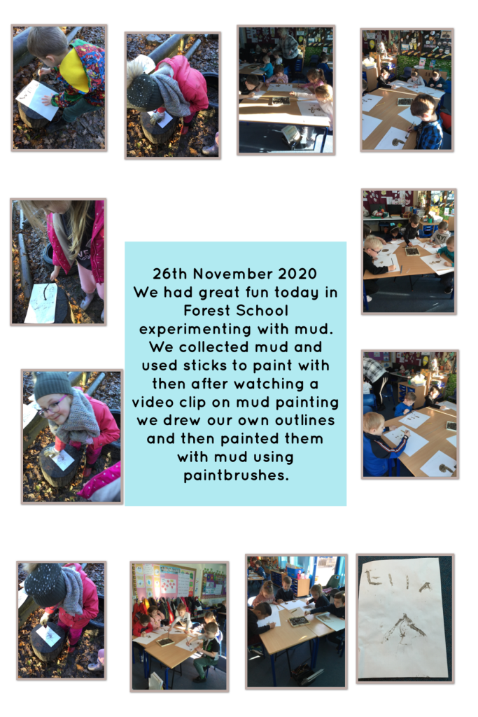 Posted on 26th Nov 2020 by Year One We had great fun experimenting with mud today. Take a look at our lovely pictures. Share this: Share on X (Opens in new window) X Share on Facebook (Opens in new window) Facebook Like Loading... Related