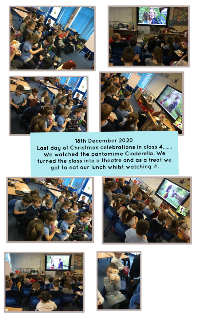 Posted on 18th Dec 2020 by Year One Had a real treat watching Cinderella pantomime. We turned the classroom into a theatre and ate our lunch whilst watching it. Share this: Share on X (Opens in new window) X Share on Facebook (Opens in new window) Facebook Like Loading... Related