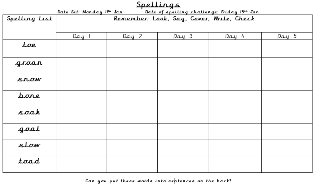 Please practice the spellings below because on Friday we will be setting you a quiz on Purple Mash.