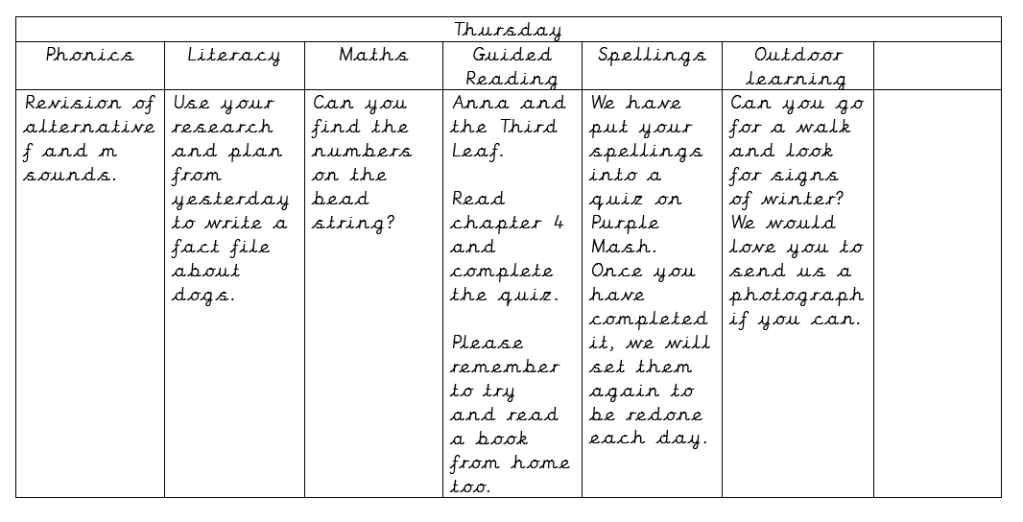 Here is the table of learning for today, the tasks have all been uploaded to Purple Mash.