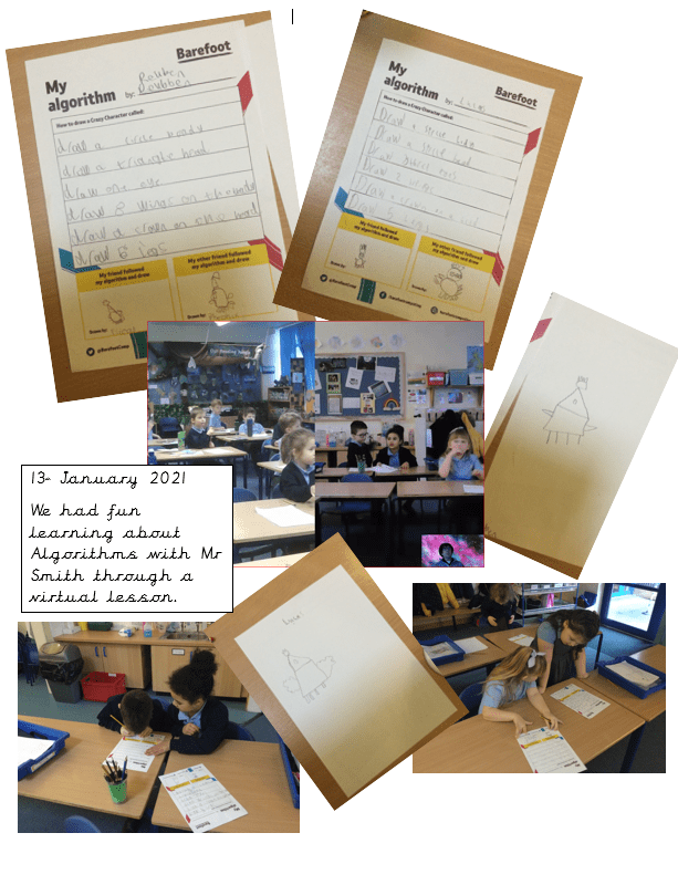 Posted on 14th Jan 2021 by Year One Yesterday we had great fun learning about algorithms through a virtual ICT lesson. Share this: Share on X (Opens in new window) X Share on Facebook (Opens in new window) Facebook Like Loading... Related