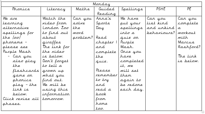 If you need any additional support please contact us between 8.50am-4.00pm via our year group e-mail. We will try to respond as quickly as possible. Also, if you would like to share any work, please e-mail it to the same e-mail address.