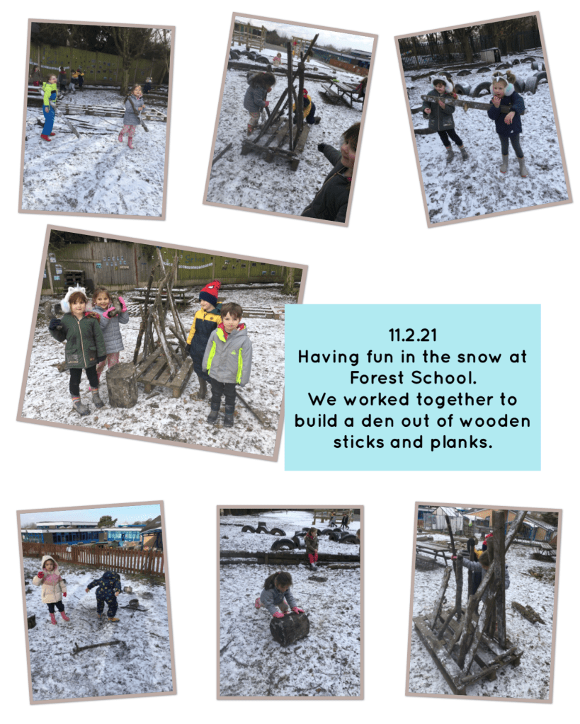 Posted on 11th Feb 2021 by Year One Den building in the snow….. What fun !!!!!!! Share this: Share on X (Opens in new window) X Share on Facebook (Opens in new window) Facebook Like Loading... Related