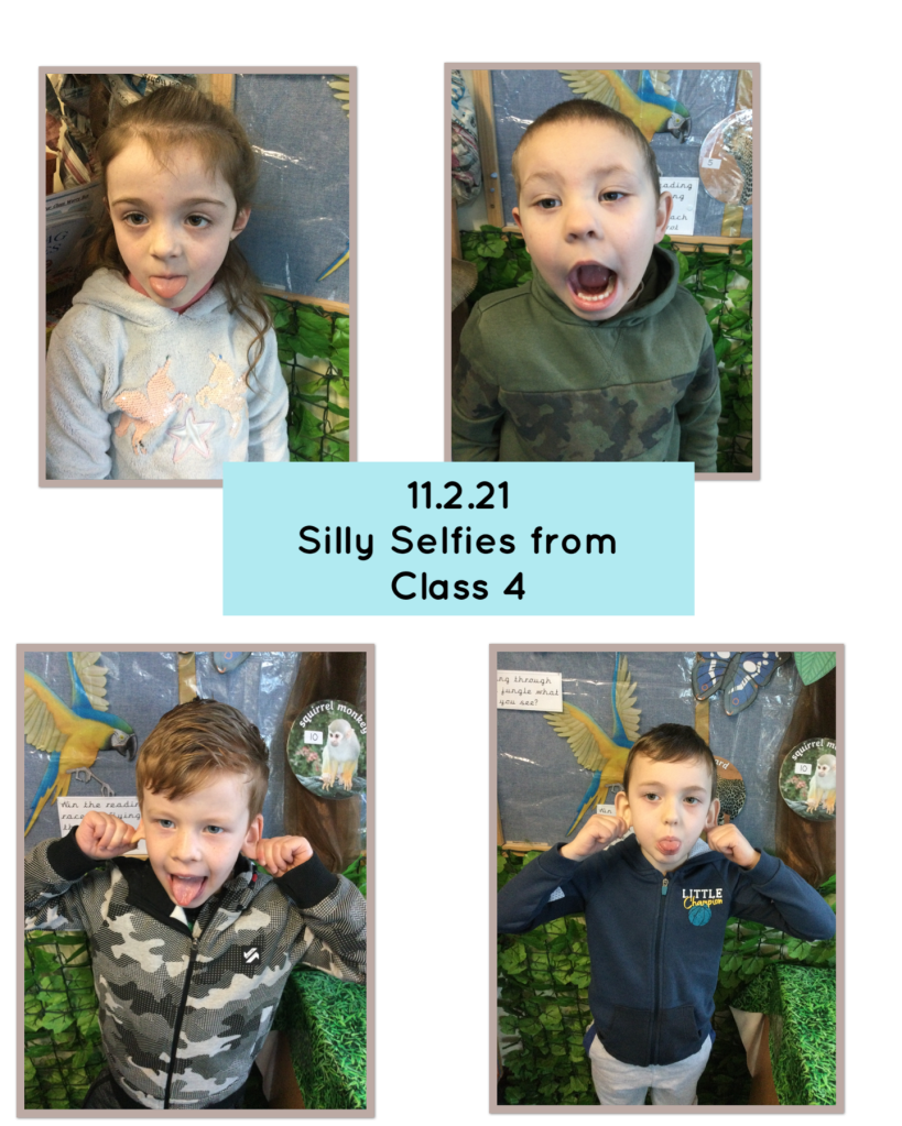 Posted on 11th Feb 2021 by Year One Hope you enjoy our silly selfies from the children in Class 4 Share this: Share on X (Opens in new window) X Share on Facebook (Opens in new window) Facebook Like Loading... Related