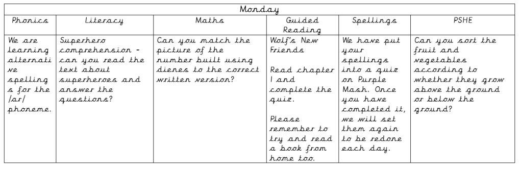If you need any additional support please contact us between 8.50am-4.00pm via our year group e-mail. We will try to respond as quickly as possible. Also, if you would like to share any work, please e-mail it to the same e-mail address.
