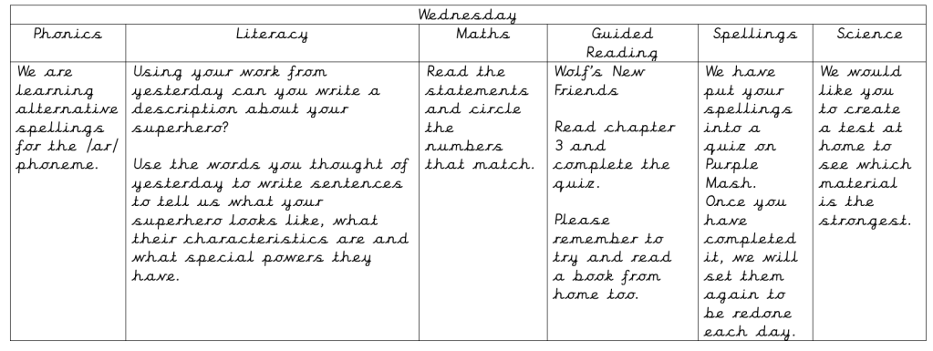 If you need any additional support please contact us between 8.50am-4.00pm via our year group e-mail. We will try to respond as quickly as possible. Also, if you would like to share any work, please e-mail it to the same e-mail address.