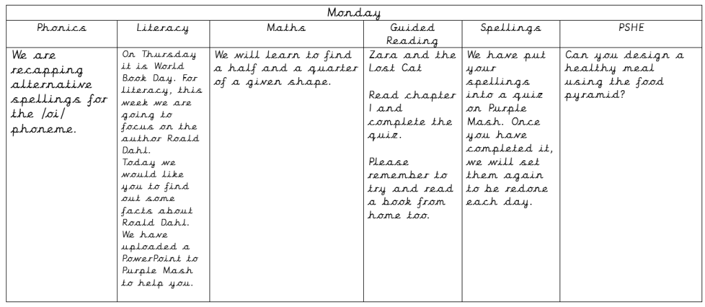 If you need any additional support please contact us between 8.50am-4.00pm via our year group e-mail. We will try to respond as quickly as possible. Also, if you would like to share any work, please e-mail it to the same e-mail address.